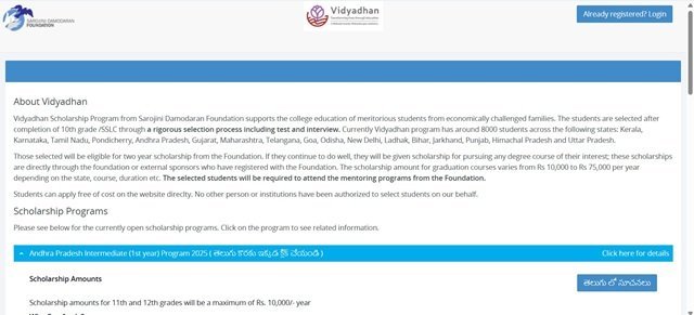 - Step 1: First, go to the Vidyadhan webpage for the scholarship.